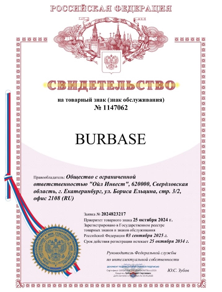 Свидетельство о регистрации товарного знака Burbase