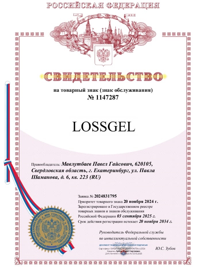 Свидетельство о регистрации товарного знака Lossgel